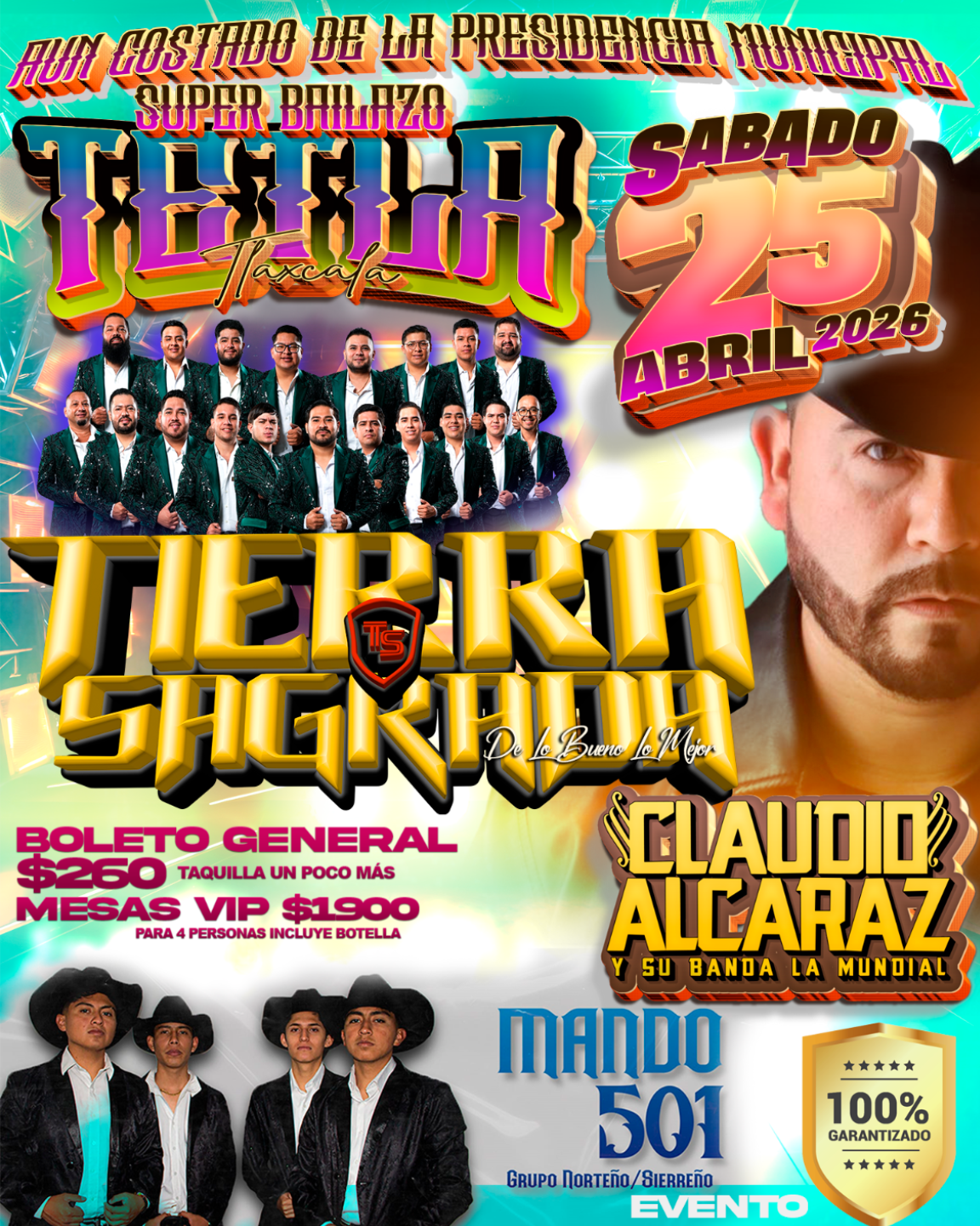No te puedes perder este 25 de abril gran baile con Banda Tierra Sagrada y Claudio Alcaraz con su Banda La Mundial